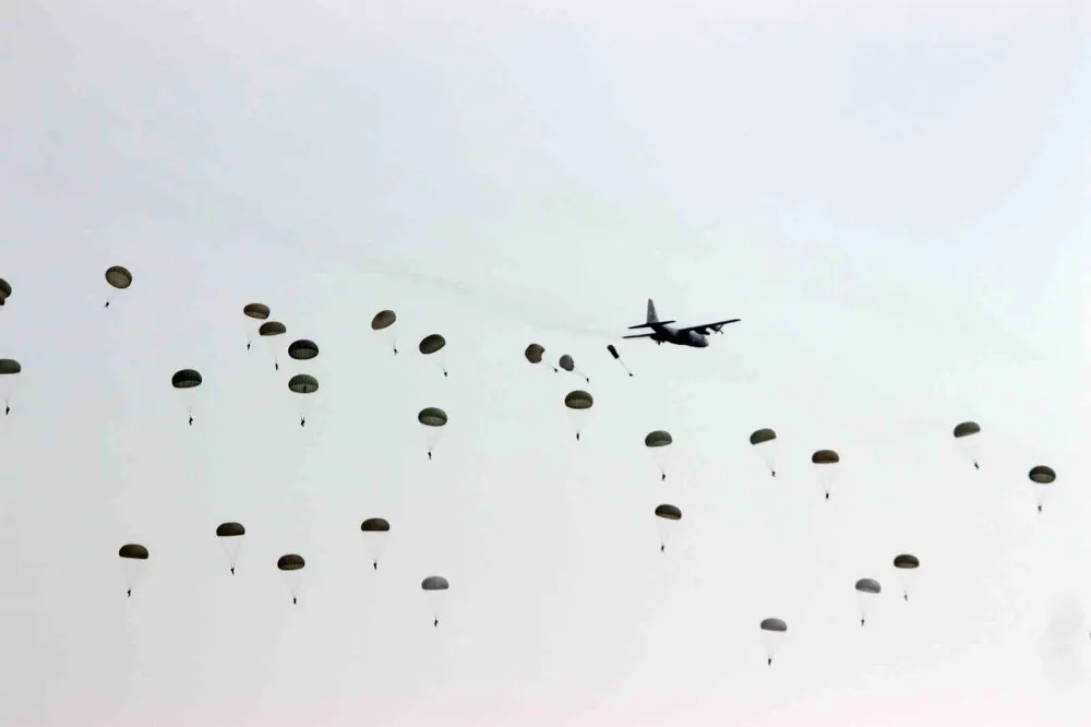 Kıbrıs Barış Harekatı’nda görev icra eden ve sancağında 2 üstün cesaret ve feragat madalyası olan Kayseri 1. Komando Tugayı tarafından düzenlenen Erciyes-2025 Tatbikatı’nın seçkin gözlemci günü icra edildi. Konvansiyonel, konvansiyonel olmayan ve hibrit harekat ortamında müşterek hava indirme yeteneğini kazanmak, kuvvet sevki ve derhal müdahale yeteneklerini geliştirmek, dost ve müttefik ülkelerle birleşik harekat icra etme kabiliyetini artırmak amacıyla düzenlenen tatbikat kapsamında, 12. Hava Ulaştırma Ana Üs Komutanlığı’nda hazırlıklarını tamamlayan 265 paraşütçü komando, Şehit Teğmen Hasan Bak Atma ve Atlama Sahası’na iniş yaptı.
