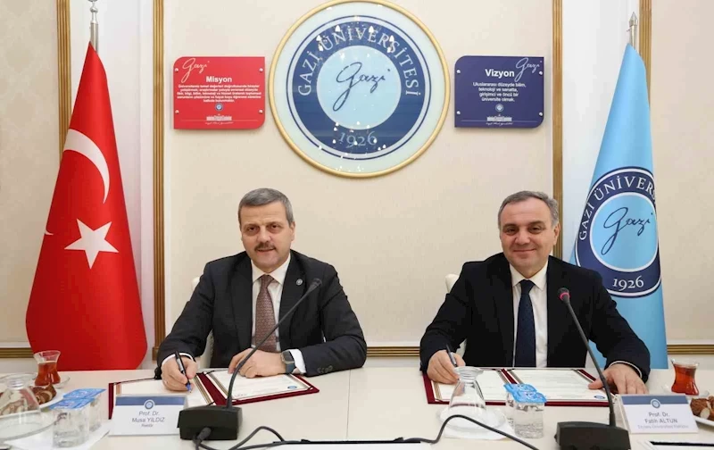Konuşmalarının ardından iş birliği protokolü, Erciyes Üniversitesi Rektörü Prof. Dr. Fatih Altun ile Gazi Üniversitesi Rektörü Prof. Dr. Musa Yıldız tarafından imzalandı.