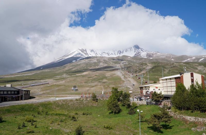 Kayseri’de dün öğleden sonra etkili olan yağışlı hava Erciyes Kayak Merkezi’nde kendisini kar yağışı olarak gösterdi. Haziran ayında 3917 metre yükseklikteki Erciyes Dağı’nın zirvesine yağan kar nedeniyle zirve beyaza büründü.
