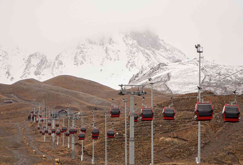 Erciyes Dağı’nın zirvesi, yağan kar ile beraber beyaza büründü.