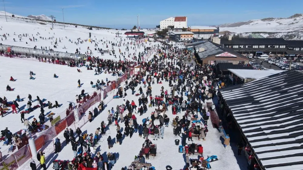 Türkiye’nin önemli kayak merkezlerinden olan Erciyes, hafta sonu binlerce turisti ağırlarken pistler turistlerle doldu taştı.