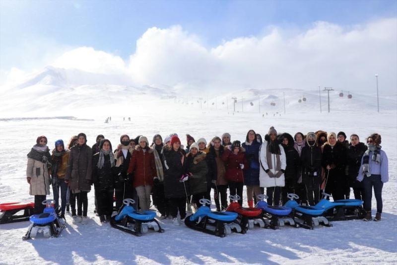 Gençlik ve Spor Bakanlığı tarafından organize edilen Kış Kampları kapsamında Erciyes’te düzenlenen Doğa Kampı’na katılan gençler, etkinliklerle dolu bir kamp dönemi geçiriyorlar.