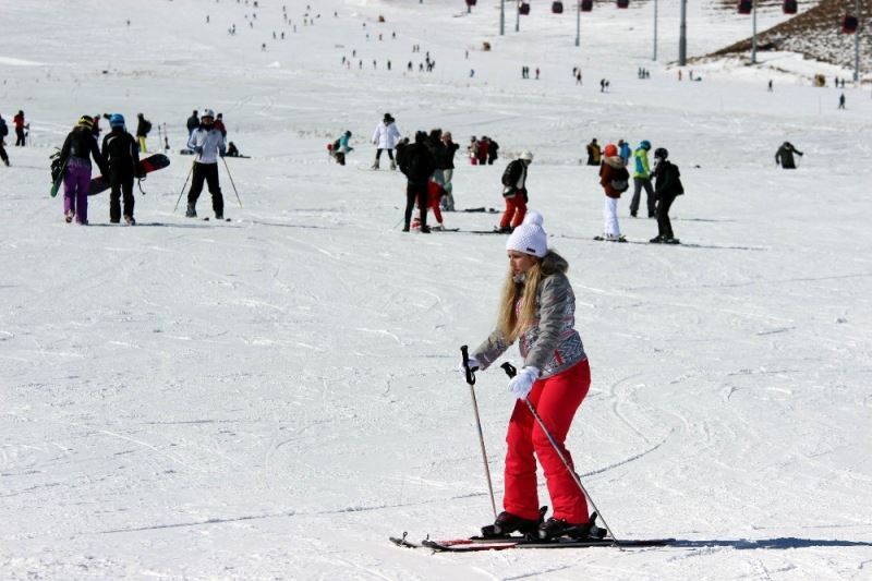 Erciyes’te kar kalınlığı 2 metreye yaklaştı, pistler tatilcilerle doldu