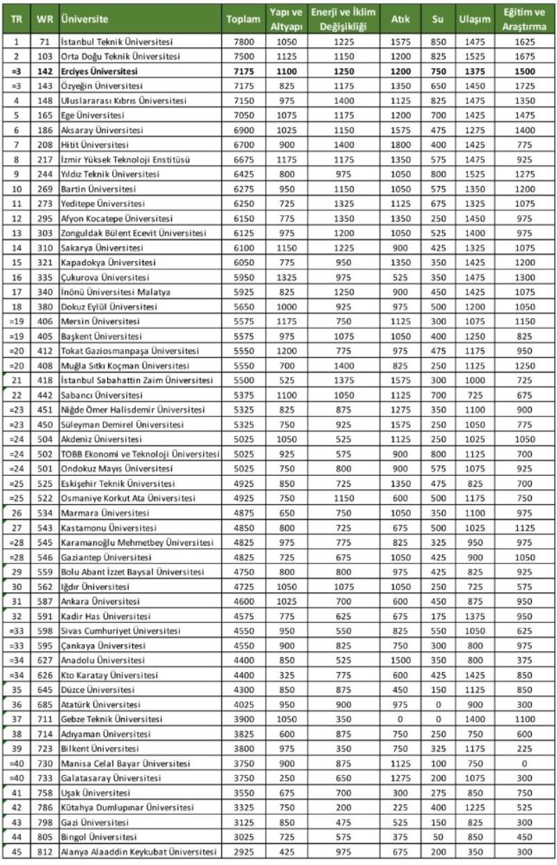 ERÜ GreenMetric 2020 sıralamasında Türkiye’nin 3. Dünyanın 142. en çevreci üniversitesi oldu