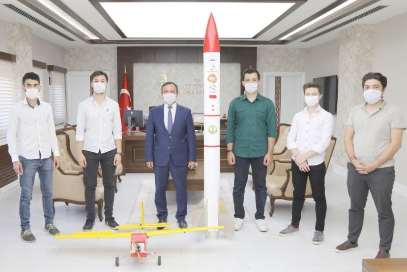 Türkiye Teknoloji Takımı Vakfı ile Sanayi ve Teknoloji Bakanlığı yürütücülüğünde Türkiye'nin önde gelen teknoloji şirketleri, kamu kuruluşları ve üniversitelerin katılımıyla düzenlenen TEKNOFEST Havacılık, Uzay ve Teknoloji Festivali Roket Yarışması sonuçları açıklandı. Açıklanan sonuçlara göre ERÜ Havacılık ve Uzay Bilimleri Fakültesi Öğrencileri tarafından oluşan Neo Aerospace Takımı KTR, THR ve Test Videoları sonuçlarına göre Orta İrtifa Kategorisi’nde 130,67 puan alarak birinci oldular. İHA yarışmaları kapsamında da kavramsal rapor aşamasını geçerek detaylı tasarım raporu göndermeye hak kazandılar. ERÜ Rektörü Prof. Dr. Mustafa Çalış’ı makamında ziyaret eden takım üyeleri tasarladıkları Roket ve İHA hakkında bilgiler verdiler. Rektör Prof. Dr. Mustafa Çalış, ziyarette yaptığı konuşmasında TEKNOFEST Havacılık, Uzay ve Teknoloji Festivali’nde başarı sergileyen öğrencileri tebrik etti.