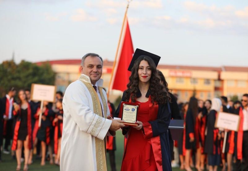 Spor Bilimleri Fakültesi’nden mezun olan yamaç paraşütü sporcusu Talas ilçesinde bulunan Ali Dağı Yamaç Paraşütü Alanından havalanarak paraşüt ile tören alanına indi. Düzenlenen program 2022-2023 eğitim-öğretim yılı dönem birincisi Gizem Nur Karabulut’un mezuniyet kütüğüne plaket çakması ile sürerken, töreni öğrencilere diplomalarının verilmesinin ardından sona erdi.