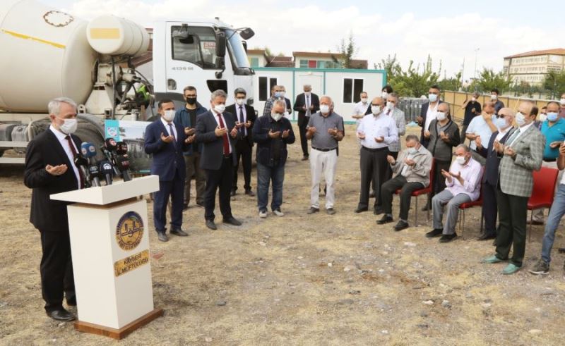 Konuşmaların ardından İl Müftüsü Prof. Dr. Şahin Güven’in duasıyla birlikte Hacı Bayram Sanık ve Evlatları Camii’nin temeline ilk beton döküldü.(İHA) -