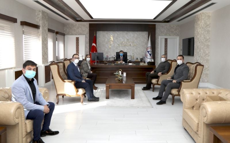ERÜ Enerji Dönüşümleri Araştırma ve Uygulama Merkezi Enerji Mühendisliği bölümünde covid-19 hastalarının tedavisinde kullanılan yerli solunum cihazına valf ve bobin tasarımı gerçekleştiren, yüksek lisans öğrencileri Esra Bayır ve Fidan Büşra Gürsoy ile lisans öğrencileri Mustafa Burhanettin Göçlü ve Onur Yılmaz, danışman hocaları Prof. Dr. Mustafa Serdar Genç ve Prof. Dr. Gamze Genç, Rektör Prof. Dr. Mustafa Çalış’ı makamında ziyaret ettiler.