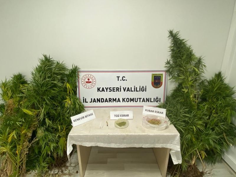 Kayseri’de jandarma ekipleri tarafından yapılan çalışmalarda evinin bahçesinde kenevir yetiştirdiği tespit edilen bir kişi yakalandı.
