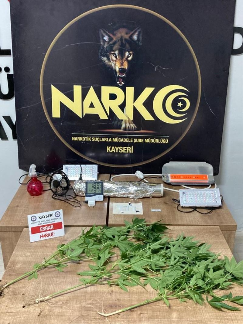 Kayseri polisi, evinin odasına kurduğu özel düzenek ile Hint keneviri yetiştiren yabancı uyruklu şahsı, düzenlediği operasyonla kıskıvrak yakaladı.