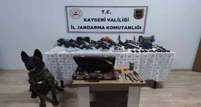 Edinilen bilgiye göre, Kayseri İl Jandarma Komutanlığı ekipleri tarafından yapılan çalışmalarda Z.T.’nin, Kocasinan ilçesine bağlı Kayabaşı Mahallesi’ndeki müstakil evinde silah imal ederek ticareti yaptığı bilgisine ulaştı. Evi tespit ederek operasyon düzenleyen ekipler, arama yaptı. Yapılan aramalarda 11 adet çeşitli çaplarda kullanıma hazır, 7 adet ise parçalara ayrılmış olmak üzere toplam 18 adet ruhsatsız tabanca, 1 adet namlusu kısaltılmış av tüfeği, 28 adet 9 mm tabanca fişeği, 53 adet 6.35 mm tabanca fişeği, 1 adet mengene, 1 adet taşlama makinası, 1 adet ölçü kumpası, çok sayıda şarjör, tabanca üst kapağı ve çeşitli çaplarda namlu, imal amacı ile kullanılan el aleti ile suçtan elde edildiği değerlendirilen 5 bin 400 TL ele geçirildi.