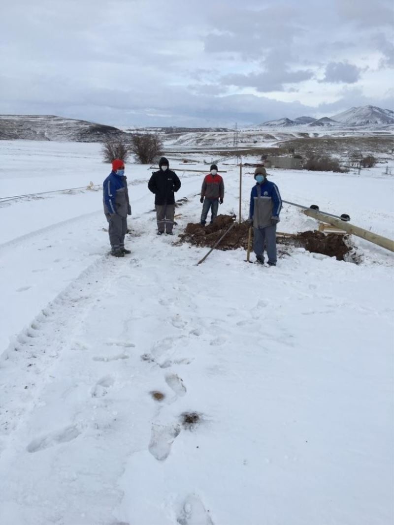 Devrilen 2 demir elektrik direğinin geçici olarak tahta direkler ile değişimi yapılarak, havaların ısınması ile birlikte demir direkler yeniden takılacak.