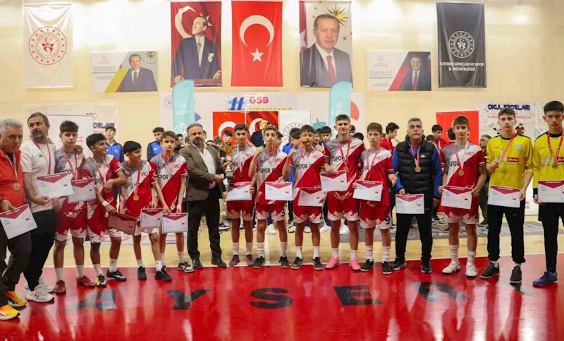 Kayseri Atatürk Spor Salonu’nda 5 gün devam eden Okul Sporları Futsal Yıldız Erkekler Türkiye İl Birinciliği yapılan final müsabakaları ile tamamlandı. Müsabakalarda dereceye giren sporculara düzenlenen tören ile kupa ve madalyaları Melikgazi Gençlik ve Spor İlçe Müdürü Atalay Yaman, Okul Sporları Şube Müdürü Ahmet Metin ve Sportif Faaliyetler Şube Müdürü Yakup Deliktaş tarafından takdim edildi. Dereceye giren okul takımları ise şu şekilde: