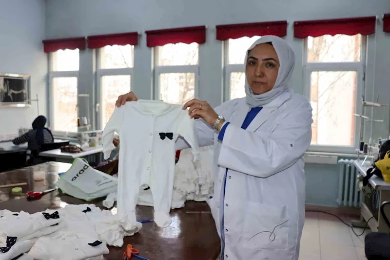 Kayseri’de halk eğitim merkezindeki kadınlar, Gazze’deki bebeklere zıbın üretmek için yoğun çaba sarf ediyor.