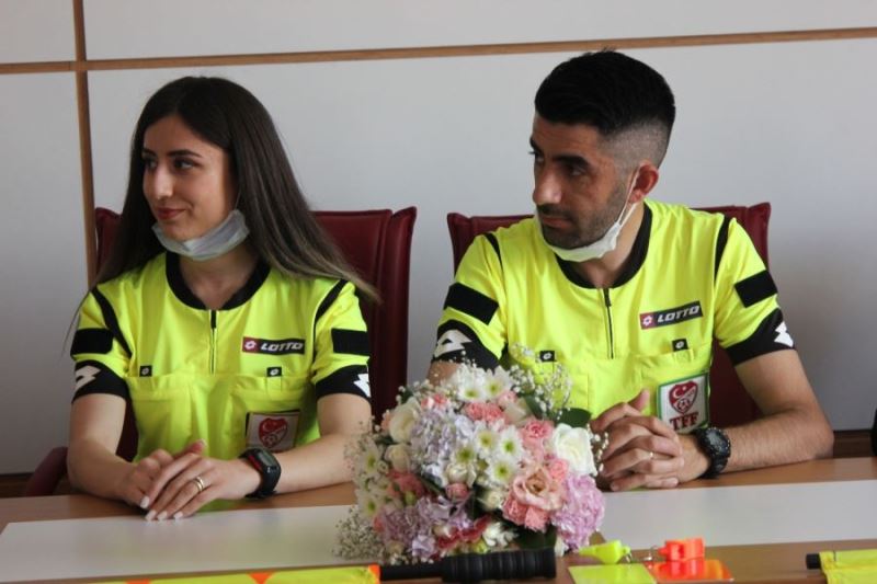 Gelinlik ve damatlık yerine hakem forması giydiler
