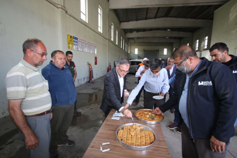 Başkan Özdoğan konuşmasının ardından işçilere baklava ikramında bulundu.