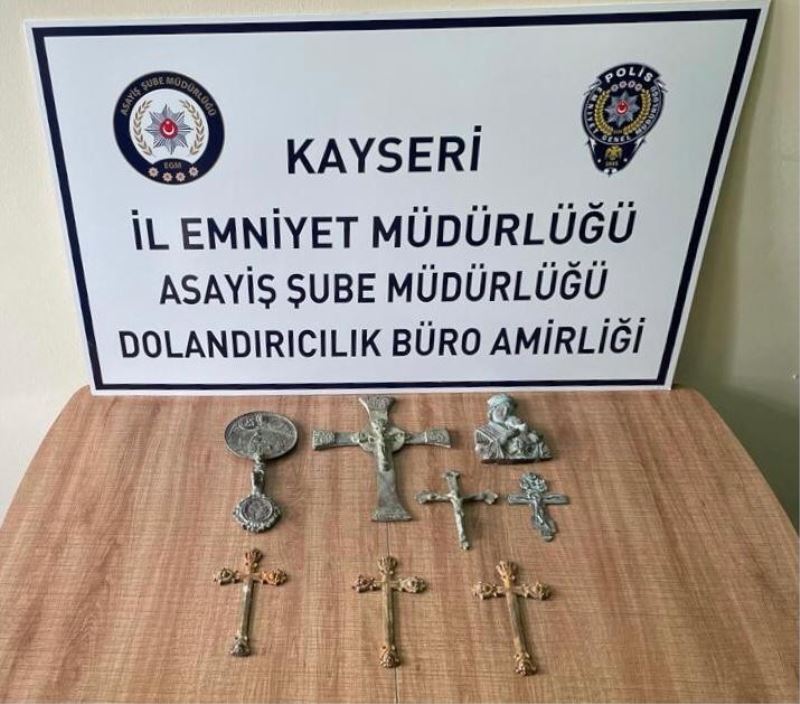 Kayseri İl Emniyet Müdürlüğü Asayiş Şube Müdürlüğü Yankesicilik ve Dolandırıcılık Büro Amirliği’ne bağlı güven timlerince yapılan çalışmalarda tarihi eser olduğu değerlendirilen 8 adet obje ele geçirildi.