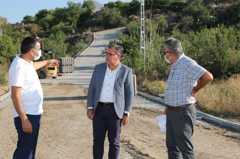 Erciyes Mahallesi Karacaören Mevkii’nde yapılan parke çalışmalarını yerinde inceleyen Başkan Özdoğan 2,5 kilometre uzunluğunda 15 bin metrekarelik bir alanda kilitli parke yol yapım çalışması yapıldığını belirterek şöyle konuştu;