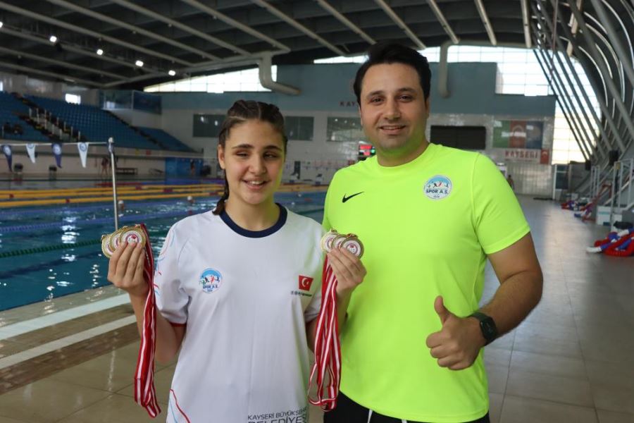Kayseri’de gittiği yaz okulunda hissederek yüzmeyi öğrenen 15 yaşındaki görme engelli Cemre Ateş, 9 yılda katıldığı 10 Türkiye Şampiyonasında 40 altın ve 1 gümüş madalya kazanarak, büyük bir başarıya imza attı.