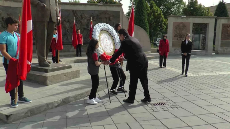 Kayseri’de İlköğretim Haftası dolayısıyla düzenlenen törende Atatürk büstüne çelenk konuldu.