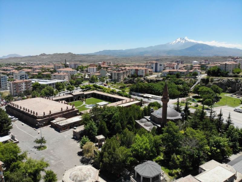 Karantinaya alınan ev sayısının artış gösterdiği İncesu ilçesi havadan görüntülendi.