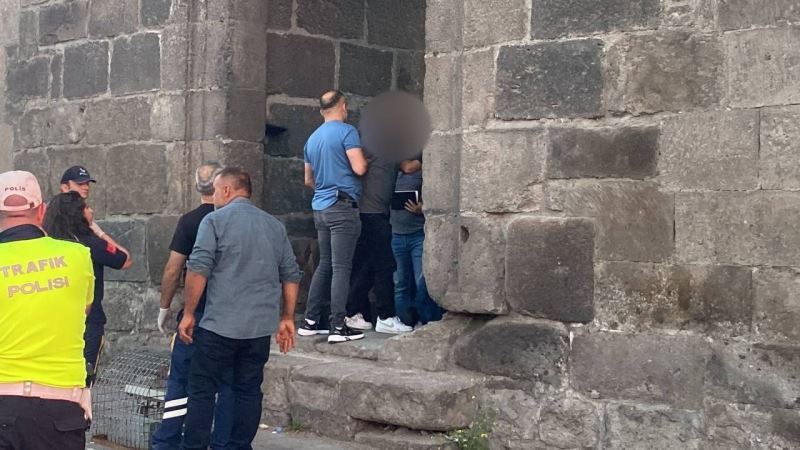 Edinilen bilgiye göre Cumhuriyet Meydanı’nda bulunan tarihi kale surlarına çıkan T.B. intihar girişiminde bulundu. Çevredekilerin durumu bildirmesi üzerine olay yerine polis, sağlık ve itfaiye ekipleri sevk edildi. Polis ekipleri caddeyi trafiğe kapatarak güvenlik önlemi alırken, itfaiye ekipleri de surların altına branda açtı.