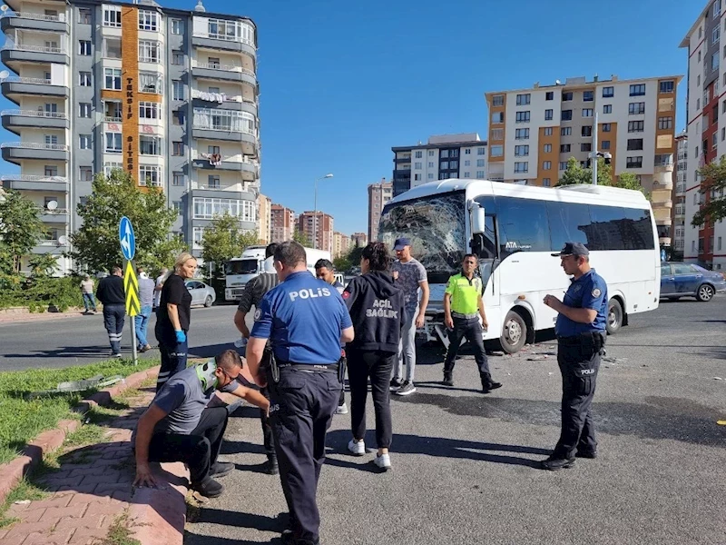 Kayseri’nin Melikgazi ilçesinde işçi servisi ile lojistik kamyonunun çarpıştığı kazada 10 kişi yaralandı.