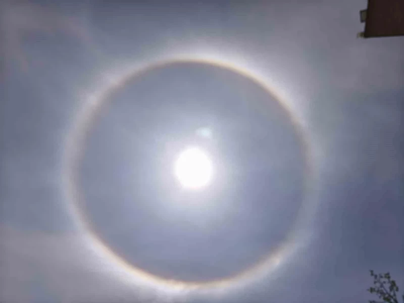 Güneşin etrafında beliren etkileyici ışık halkası olan ’halo’ Develi’de görüntülendi.