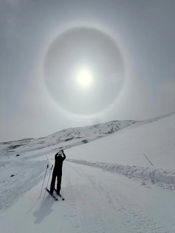 Güneşin etrafında beliren etkileyici ışık halkası olan ’halo’ Erciyes’te görüntülendi.