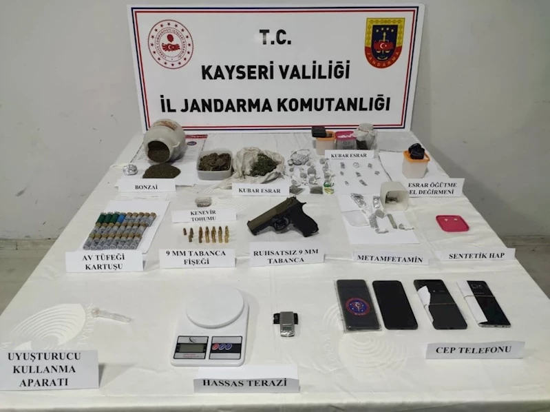 Kayseri İl Jandarma Komutanlığı ekiplerince Melikgazi, Yahyalı ve İncesu ilçelerinde yapılan aramalarda çeşitli miktarda uyuşturucu madde ele geçirilirken 3 kişi yakalandı.