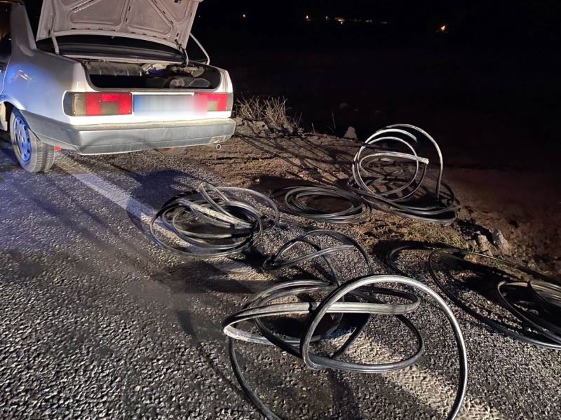 Edinilen bilgiye göre ilçeye bağlı Şahmelik mahallesinde meydana gelen olayda mahalle muhtarı İsrafil Çal, kabloların çalındığına yönelik İlçe Jandarma Komutanlığı’na ihbarda bulundu. İhbarın ardından harekete geçen jandarma ekiplerince, 34 TC 0677 plakalı otomobilde yaptıkları aramalarda çok sayıda çalıntı olduğu değerlendirilen kablo ele geçirilirken B.T. ise gözaltına alındı.