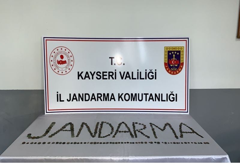 Kayseri İl Jandarma Komutanlığı ekiplerince yapılan çalışmalarda 289 adat sikke ele geçirilirken olayla ilgili 1 kişi gözaltına alındı.