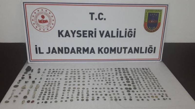 Kayseri İl Jandarma Komutanlığı ekiplerince yapılan çalışmalarda 400 adet sikke ele geçirilirken olayla ilgili 1 kişi gözaltına alındı.