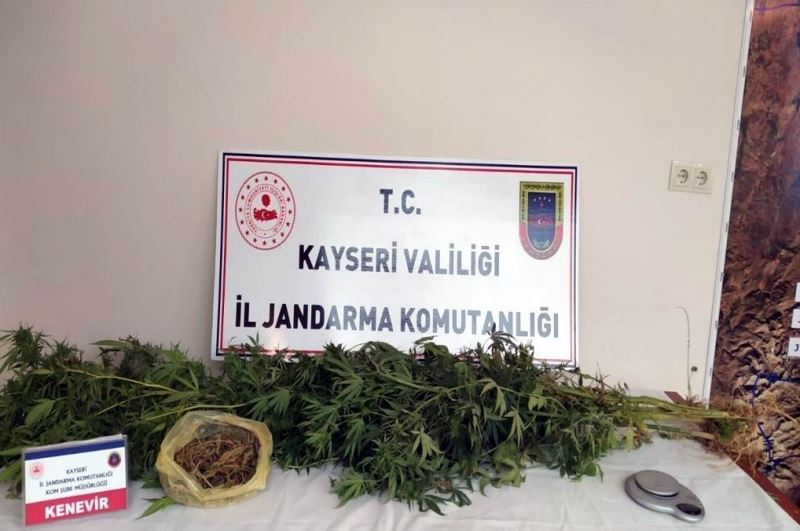 Kayseri İl Jandarma Komutanlığı’nca yapılan çalışmalarda bir miktar hint keneviri ele geçirilirken olayla ilgili 1 kişi gözaltına alındı.