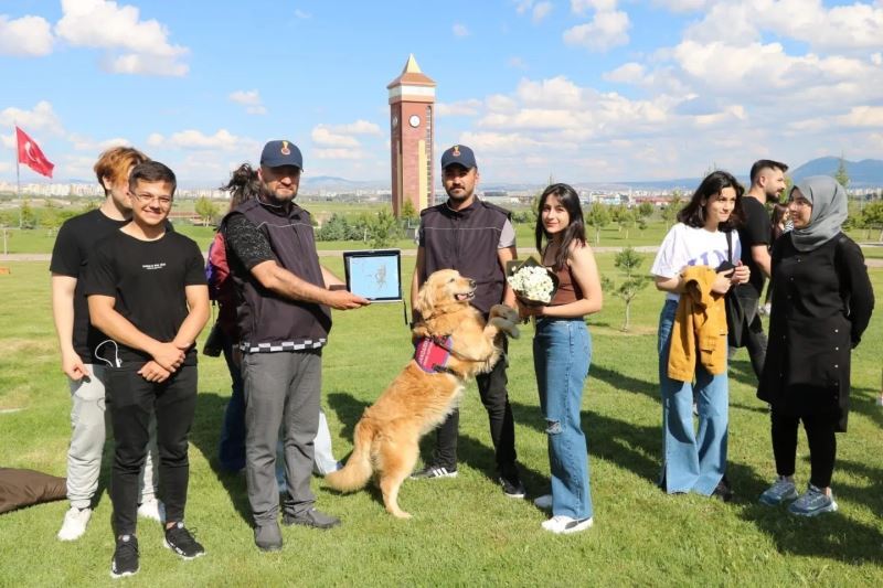 Kayseri’de bir üniversitede düzenlenen bahar şenlikleri programında, İl Jandarma Komutanlığı envanterinde bulunan eğitimli köpekler katılımcılardan beğeni topladı.