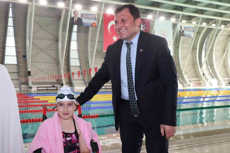Olimpik Yüzme Havuzunda antrenman yapan engelli sporcularla bir araya gelen Gençlik ve Spor İl Müdürü Ali İhsan Kabakcı, sporcuların 3 Aralık Dünya Engelliler Gününü kutladı.