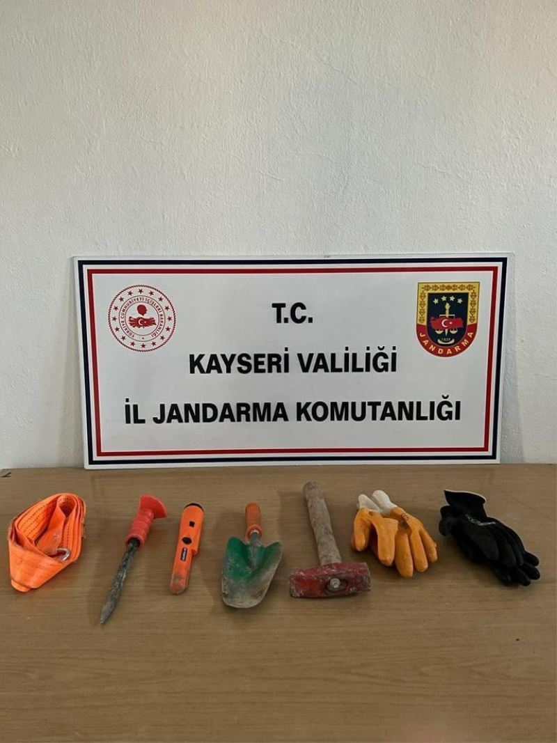 Kayseri İl Jandarma Komutanlığı ekiplerince yapılan çalışmalarda, kaçak kazı yapan 2 kişi suçüstü yakalandı.
