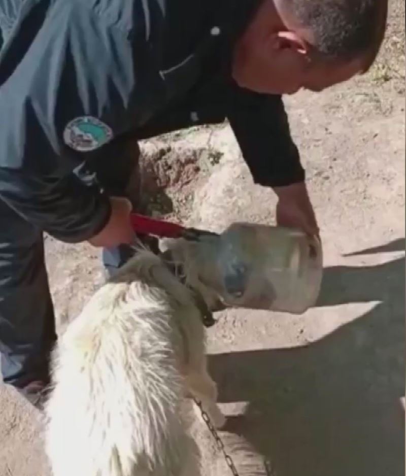 Kocasinan ilçesinde bir köpeğin kafasının bidona sıkıştığını gören vatandaşlar, itfaiyeden yardım istedi. Ekipler, bidonu keserek köpeği kurtardı. Bidon kafasından çıktıktan sonra ekiplere adeta sevgi gösterinde bulunan köpeğin o anları da objektiflere yansıdı.