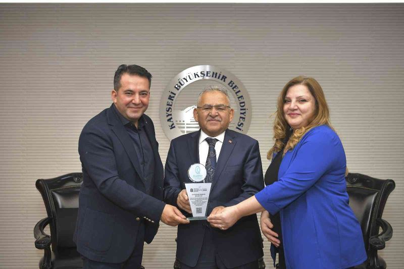 KalDer Kayseri Şube Başkanı Erkut Korkmaz, ziyaret sonrasında Başkan Büyükkılıç’a, Büyükşehir Belediyesi’nin 8. Erciyes Mükemmellik Zirvesi’ne desteklerinden dolayı plaket takdim ederek, katkılarından dolayı teşekkür etti.