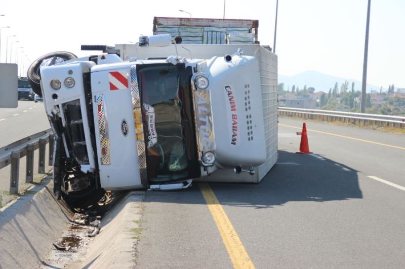 Kamyonet yan yattı, sürücü yara almadan kurtuldu