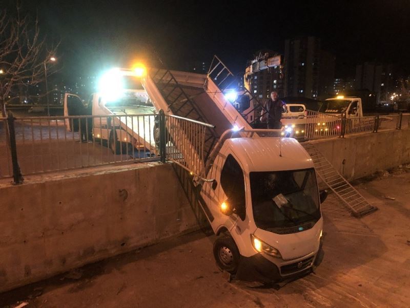 Kayseri’nin Melikgazi ilçesinde kamyoneti ile kanala uçan alkollü sürücü yaralandı.
