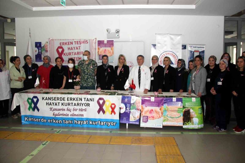 1-7 Nisan Kanser Haftası nedeniyle, toplumda farkındalık oluşturmak amacıyla Erciyes Üniversitesi Tıp Fakültesi Genel Cerrahi Anabilim Dalı Öğretim Üyesi Prof. Dr. Erdoğan Sözüer tarafından, Kayseri İl Sağlık Müdürlüğü Kanser Biriminin de katkılarıyla Gevher Nesibe Hastanesi’nde etkinlik gerçekleştirildi. Etkinlikte hekimler vatandaşları kanser karşı bilgilendirerek tanıtıcı broşürler dağıttı. Etkinlik hakkında bilgiler veren Prof. Dr. Sözüer; "Erciyes Üniversitesi Tıp Fakültesi Genel Cerrahi Anabilim Dalı Öğretim Üyesi Prof. Dr. Erdoğan Sözüer; "Kanser sadece dünyanın değil Türkiye’nin de önemli problemlerinden bir tanesi. Her sene Nisan ayının ilk haftasında kansere dikkat çekmek üzere vatandaşı bilgilendirmek üzere pek çok bilimsel ve sosyal programlar yapılıyor. Sağlık müdürlüğümüz ve Erciyes Üniversitesi Tıp Fakültesi olarak her sene sosyal şuurlandırma programları yapıyoruz. Bugün de bu standı onun için açtık" dedi.