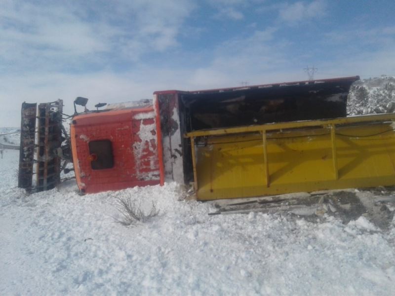 Karayollarına ait kar küreme aracı kar temizleme çalışmaları sırasında şarampole düşerek yan yattı. Kazada ölen veya yaralanan olmadı.