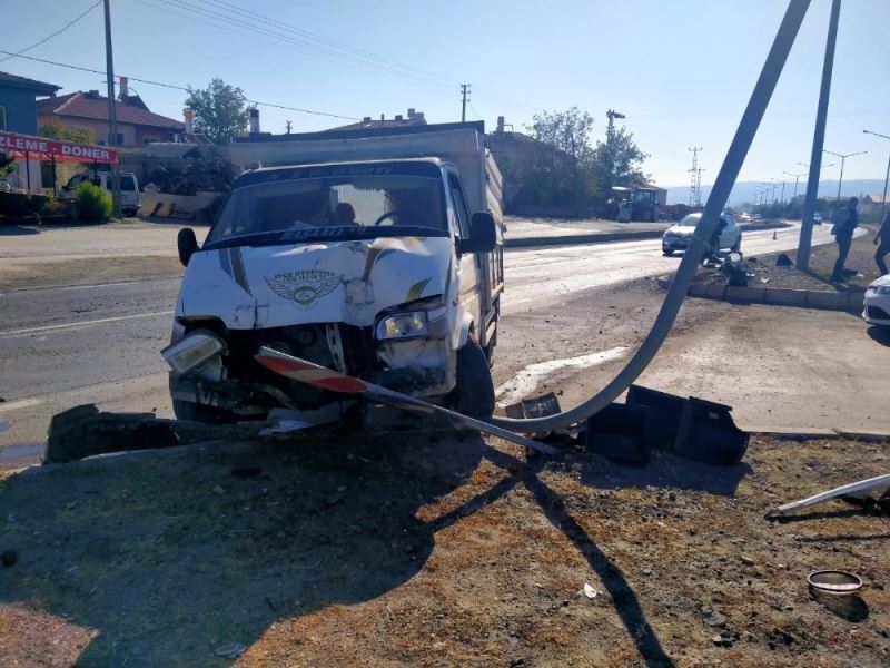 Kayseri’nin Yeşilhisar ilçesinde kavşakta duramayan araç, başka bir araca çarptıktan sonra refüje çıkarak durabildi.
