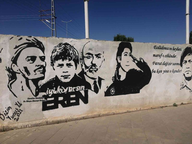 Şehit Komiser Yardımcısı Cennet Yiğit, şehit Ömer Halisdemir, milli şair Mehmet Akif Ersoy ve Yunus Emre gibi önemli ve değerli isimlerin yer aldığı duvara, Trabzon Maçka’da 11 Ağustos 2017’de teröristlerle girilen çatışma sırasında hayatını kaybederek şehit olan 15 yaşındaki Eren Bülbül’ün de resmi çizildi.