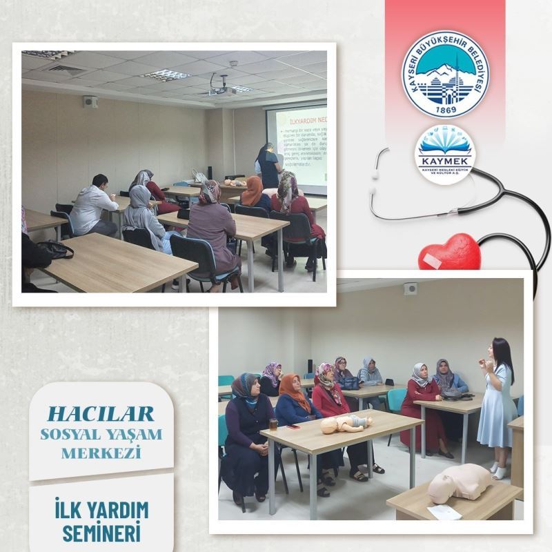 Kentte mesleki eğitim ve sanat kurslarının öncüsü olan Büyükşehir Belediyesi KAYMEK A.Ş. faaliyetlerini aralıksız sürdürürken, şehir merkezinin yanı sıra ilçelerde de düzenlenen etkinliklerde ilgi odağı oluyor. Kayseri Büyükşehir Belediyesi, Büyükşehir Belediye Başkanı Dr. Memduh Büyükkılıç’ın talimatları çerçevesinde ‘bilinçli ve duyarlı toplum’ olgusunu her daim üst seviyede tutmak amacıyla birçok eğitim semineri gerçekleştiriyor. Bu çerçevede Büyükşehir Belediyesi KAYMEK, Kayseri İl Sağlık Müdürlüğü işbirliği ile ilçelerde bulunan İlçe Sosyal Yaşam Merkezlerinde ‘İlk Yardım’ seminerleri düzenliyor.
