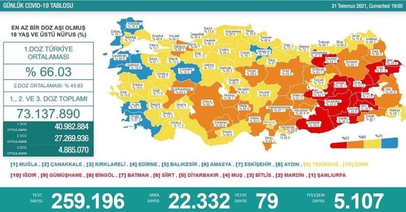 Koronavirüse karşı aşılamayı kesintisiz sürdüren Kayseri, aşılama tablosunda turuncudan sarıya döndü.