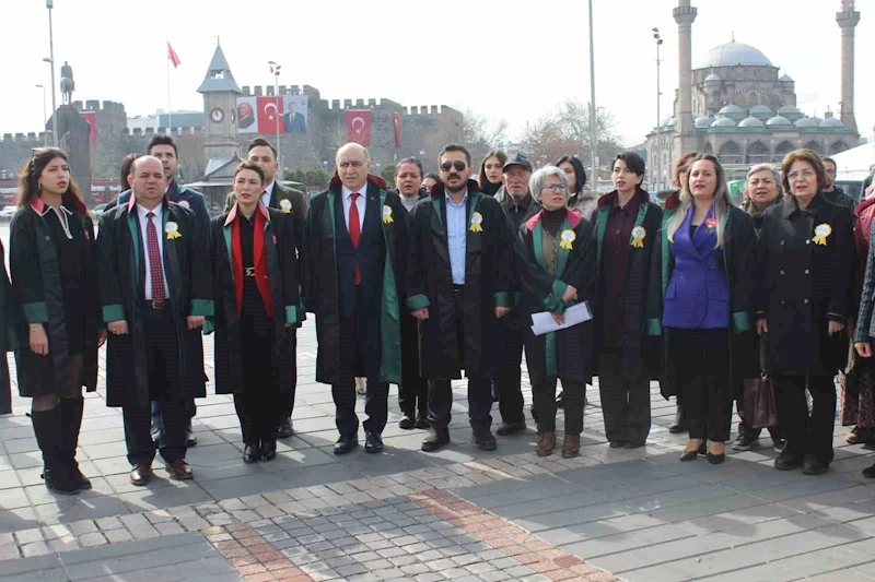 Kayseri Barosu tarafından 8 Mart Dünya Kadınlar Günü dolayısıyla Cumhuriyet Meydanı’nda bulunan Atatürk büstüne çelenk bıraktı. Saygı duruşunda bulunulması ve İstiklal Marşı’nın okunmasının ardından bir konuşma yapan Kayseri Barosu Kadın Hakları Komisyon Başkanı Av. Eylem Sarıoğlu, Tüm dünyada, kadınların eşitlik, adalet ve kadın hakları için verdikleri mücadelenin hatırlandığı; kadının erkekle yaşamın her alanında eşit konumlandırılması gerektiğinin vurgulandığı; cinsiyete dayalı ayrımcılık ve şiddetin son bulmasının ve kadının insan haklarının yaşama geçirilmesinin istendiği; kadının insan haklarını ihlal eden düzene karşı mücadeleye büyük bir kararlılıkla devam edileceğini haykırdığı gündür. 8 Mart, kadın dayanışmasının, örgütlü mücadelemizin sembolüdür. Medeni Kanun’da yer alan ve en temel haklarımız olan boşanma, velayet, nafaka hakkı başta olmak üzere, 6284 sayılı yasa ile elde ettiğimiz kazanımlarımızın tartışmaya açılmasını kabul etmiyoruz. 6284 sayılı yasanın tartışma konusu olması, yasadan kaynaklı taleplerin etkin uygulanmaması sonucunda her gün daha fazla kardeşimizi kaybetmeye tahammülümüz yok. Kadın meslektaşlarımız her zaman kadın mücadelesinin en önemli bileşenleri olarak en önde yer aldılar. Buna rağmen bugün bürolarımız ve adliye koridorları dahi bizim için güvenli olmaktan uzak. Taleplerimiz çok açık. Yaşam hakkımız başta olmak üzere, güvenli kentlerde, emeğimizin karşılığını aldığımız, eşit işe eşit ücret taleplerinin karşılandığı, kadın yoksulluğunun olmadığı bir dünya. Kadının yaşam hakkı başta olmak üzere haklarını korumakla yükümlü olanların bu konuda sessiz kalmalarını kabul etmiyoruz. Yaşam hakkımızı ihlal edenlerin her zaman karşısında olacağımızı ve haklarımızı her zaman savunacağımızı bir daha yüksek sesle tekrarlıyoruz” şeklinde konuştu.