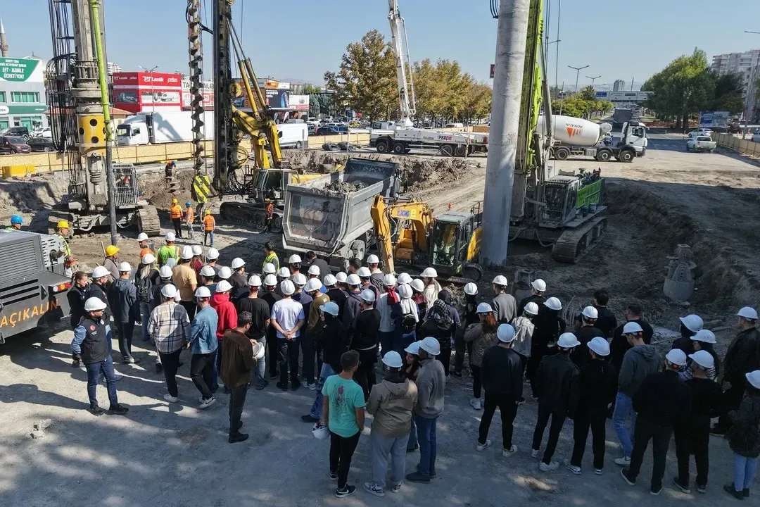 KAYSERİ (İGFA) - Genç ve öğrenci dostu şehir Kayseri’nin belediyesi Büyükşehir, öğrencilere yönelik katkı ve desteklerini her kulvarda sürdürmeye devam ediyor. Bu kapsamda yol, katlı kavşağı ve kentsel dönüşüm inşa çalışmaları kapsamındaki DSİ Ana Tamir Katlı Kavşağı ile Sahabiye Kentsel Dönüşüm projesindeki temel çalışmalarında üniversite öğrencilerini ağırlayan Büyükşehir, teorik derslerdeki bilgileri uygulamalı olarak da öğrencilere sunma fırsatı tanıdı.
