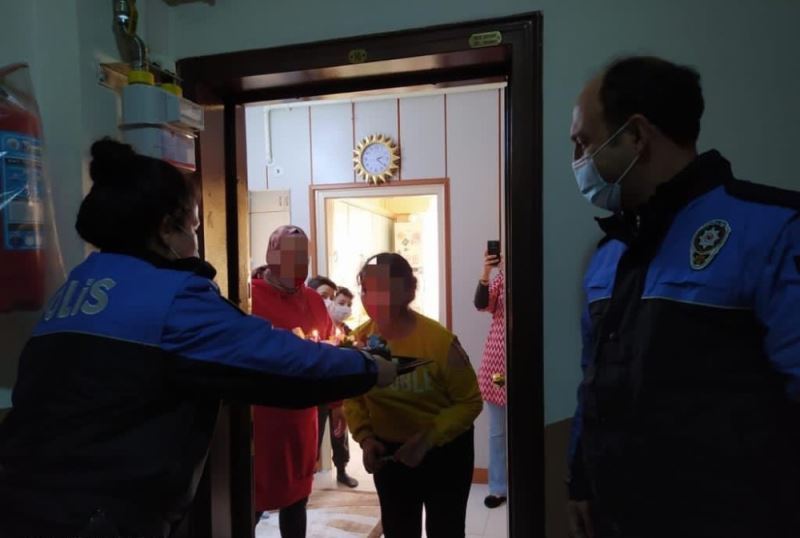 Kayseri’de polis ekipleri, down sendromlu Neriman Canpolat’a sürpriz yaparak doğum gününü evlerinin önünde kesikleri pastayla kutladı.